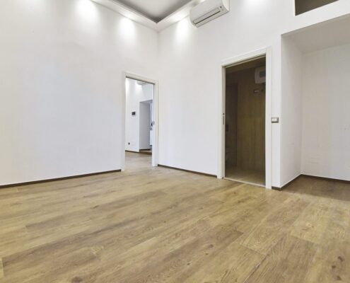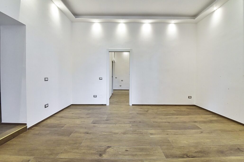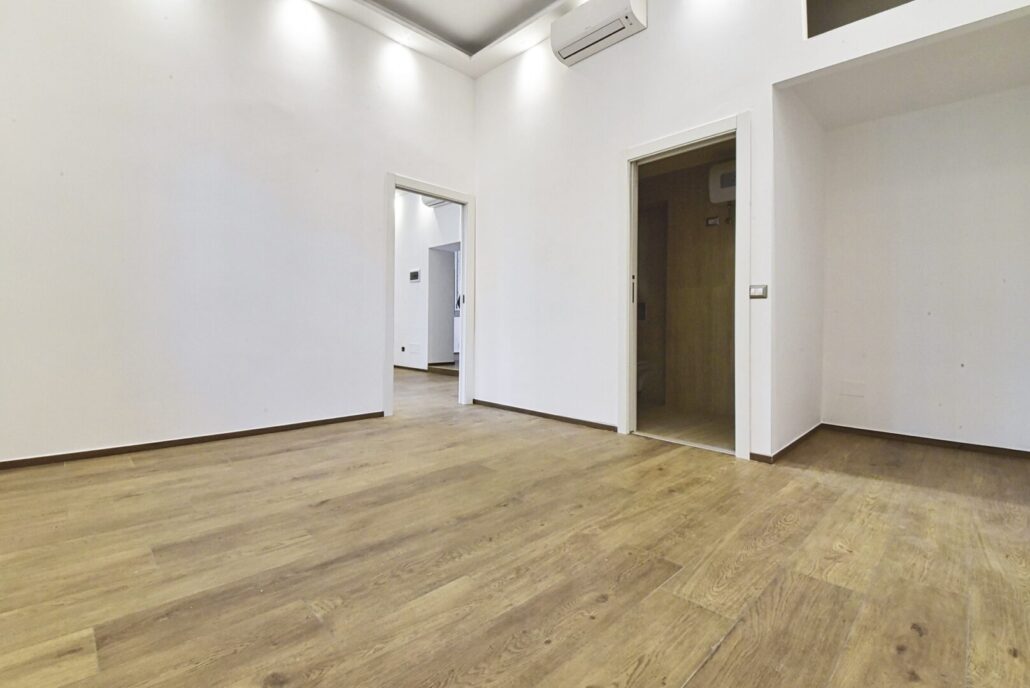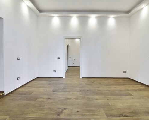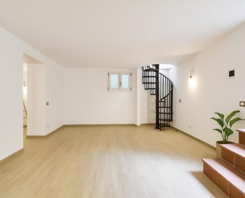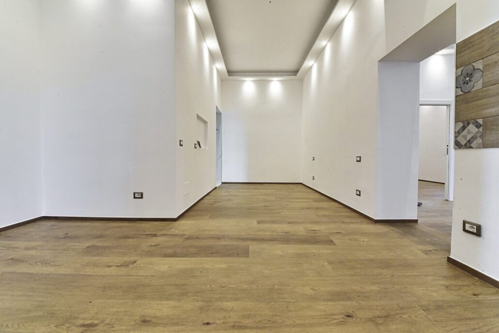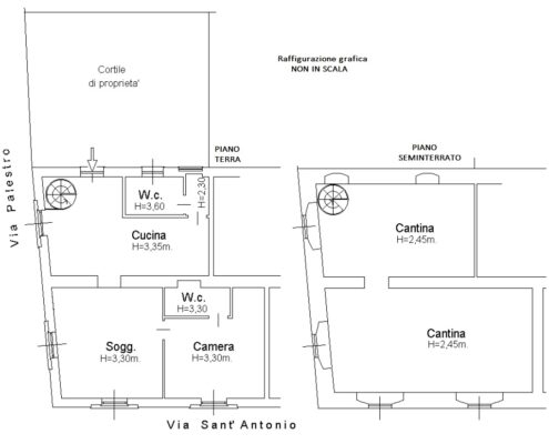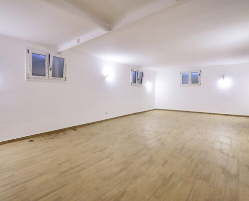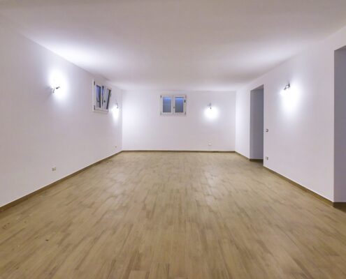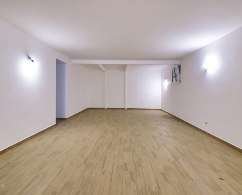 Una scala interna collega al piano seminterrato, di pari metratura, attualmente suddiviso in due locali utilizzati come camere e un ulteriore spazio multiuso ideale come studio, area hobby o zona relax.