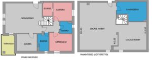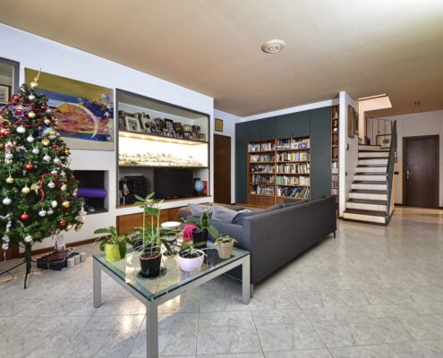 Piano 2°: ingresso, salone e cucina abitabile con accesso ad una loggia vivibile, camera da letto con cabina armadio, camera matrimoniale, doppi servizi entrambi con finestra; una scala interna collega l’immobile al piano mansardato costituito da: zona giorno, ampia lavanderia e locale hobby.