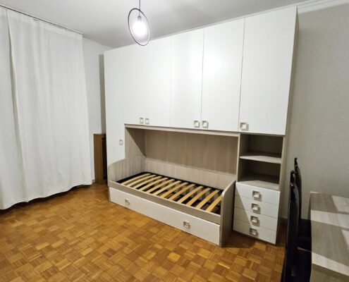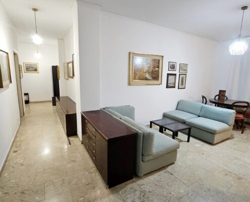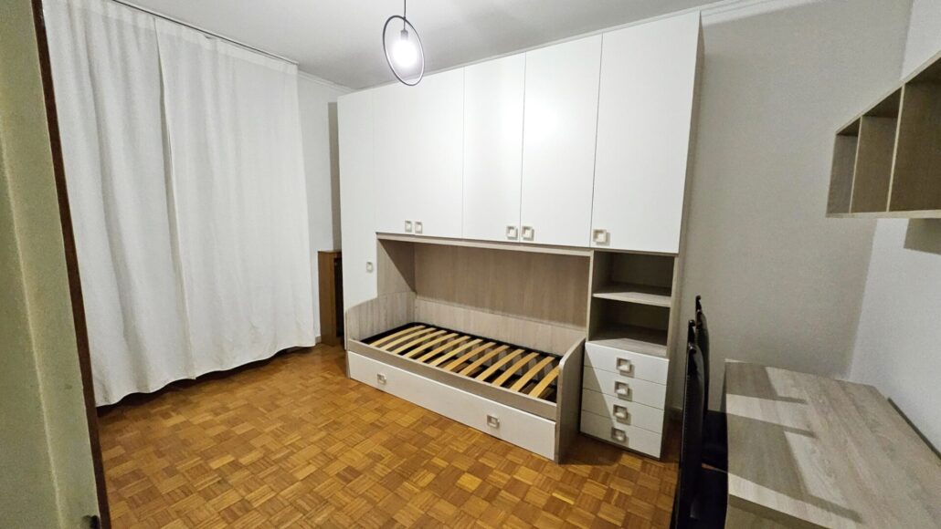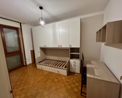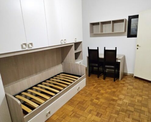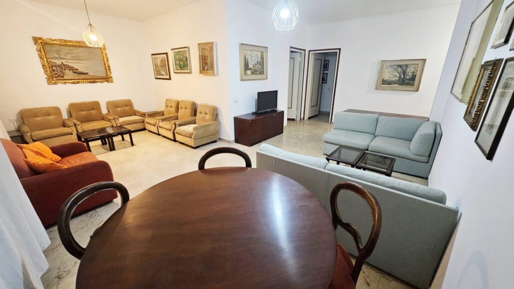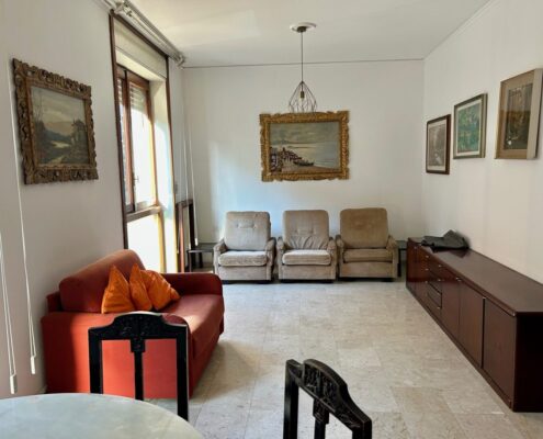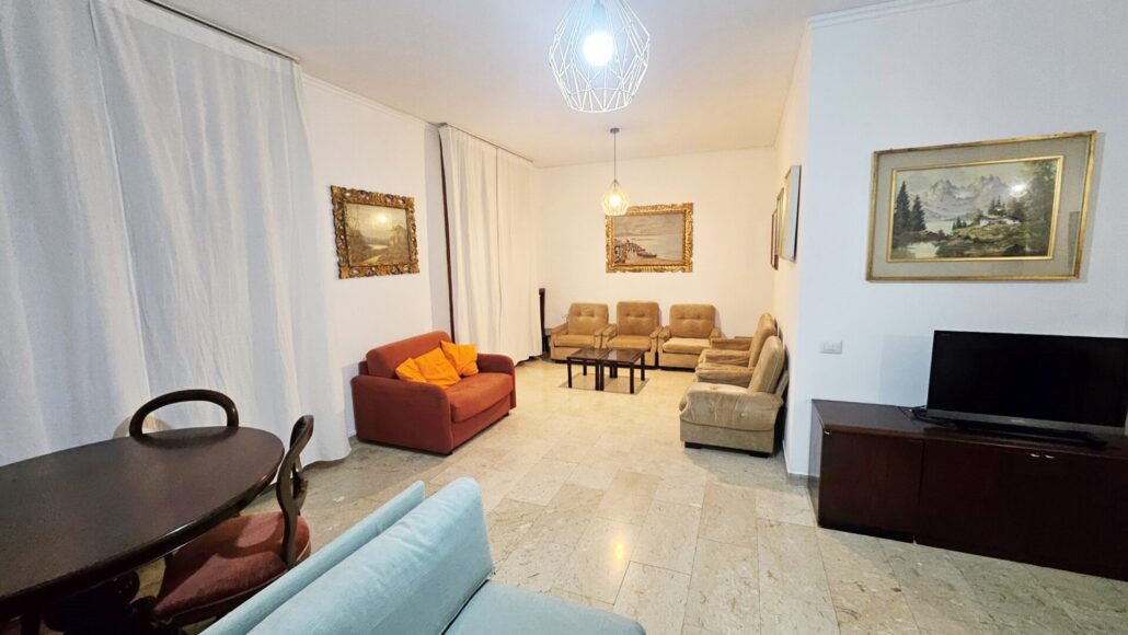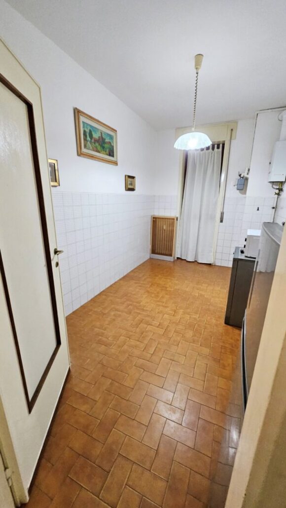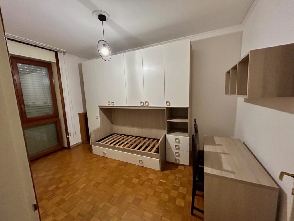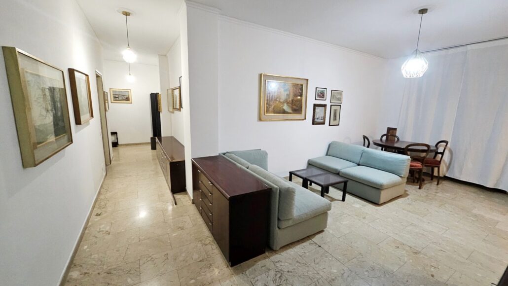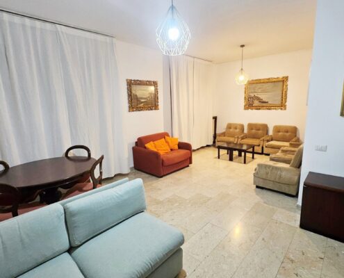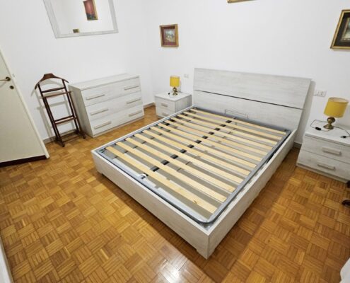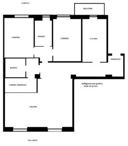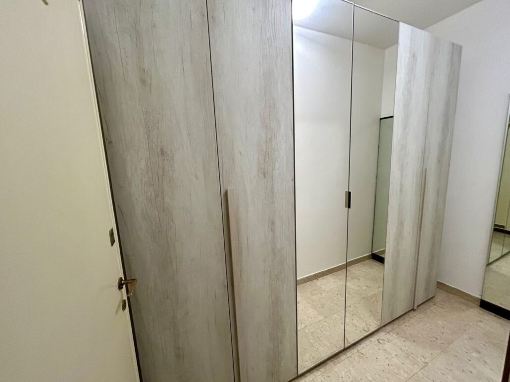 L’immobile è così suddiviso: ingresso, ampio soggiorno, cucina abitabile con affaccio su balcone, due camere da letto, doppi servizi, cabina armadio e cantina di pertinenza.